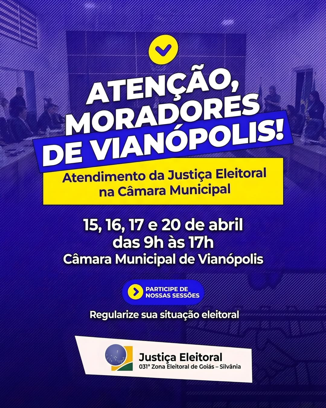 Regularize sua situação eleitoral e aproveite essa oportunidade! Justiça Eleitoral – 031ª Zona Eleitoral de Goiás (Silvânia).